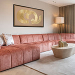 Set against a neutral backdrop and encased in a sleek black and gold frame, this art piece captivates with its textured gold foil rings, elegantly incomplete yet strikingly impactful. The Eden Wall Art effortlessly becomes the centrepiece of any room, bringing a rich warmth and sophisticated elegance to your space.