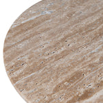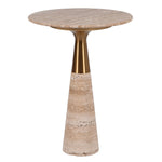 Crafted from rich travertine with a gleaming brass accent, its sleek hourglass silhouette exudes a blend of mid-century and art deco influences. This versatile design is equally suited for functional use or for displaying decorative accents, adding elegance wherever it’s placed.