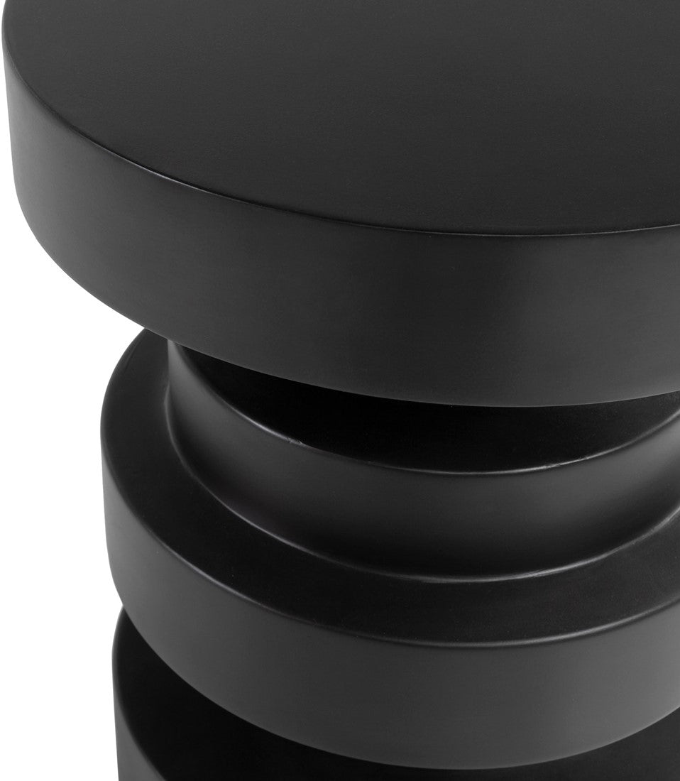 Expertly crafted from black Glassfibre Reinforced Concrete, this exquisite stool boasts an appearance akin to a carved sculpture. Its asymmetrical stepped design pays homage to the grandeur of traditional Roman pillars, introducing a touch of timeless elegance to any setting.